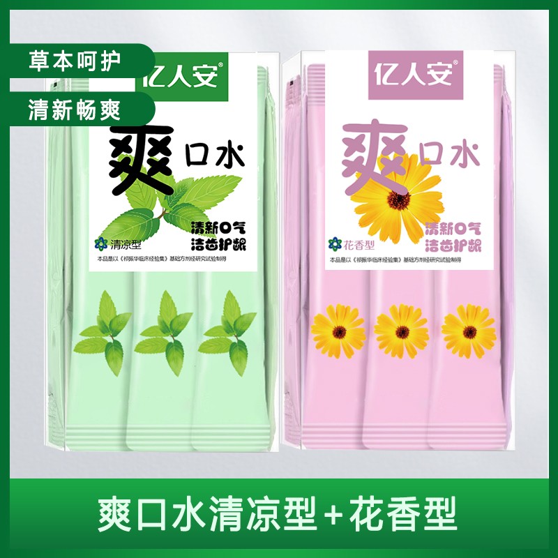 亿人安爽口水便携条装一次性呵护牙龈清洁口腔男女清新口气漱口水