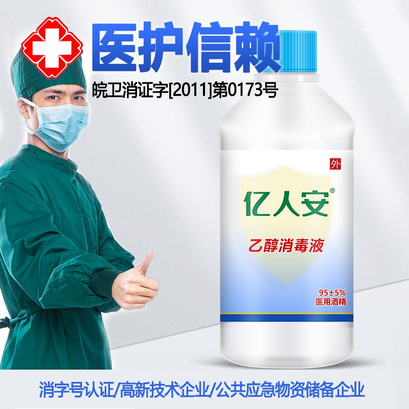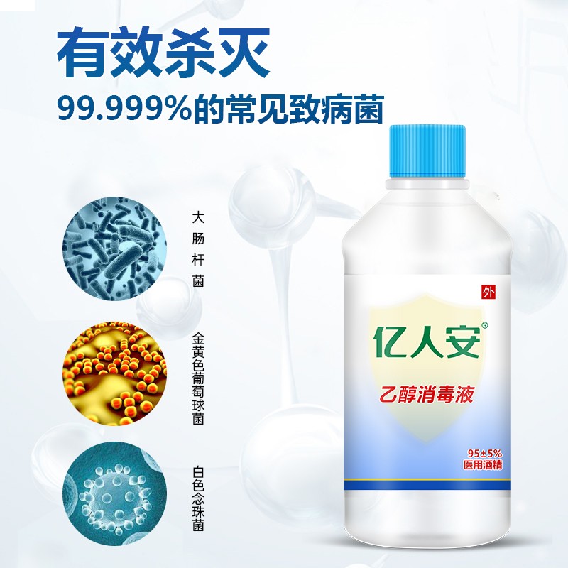 亿人安95度医用酒精消毒液95%乙醇清洁美甲火疗拔罐500ML